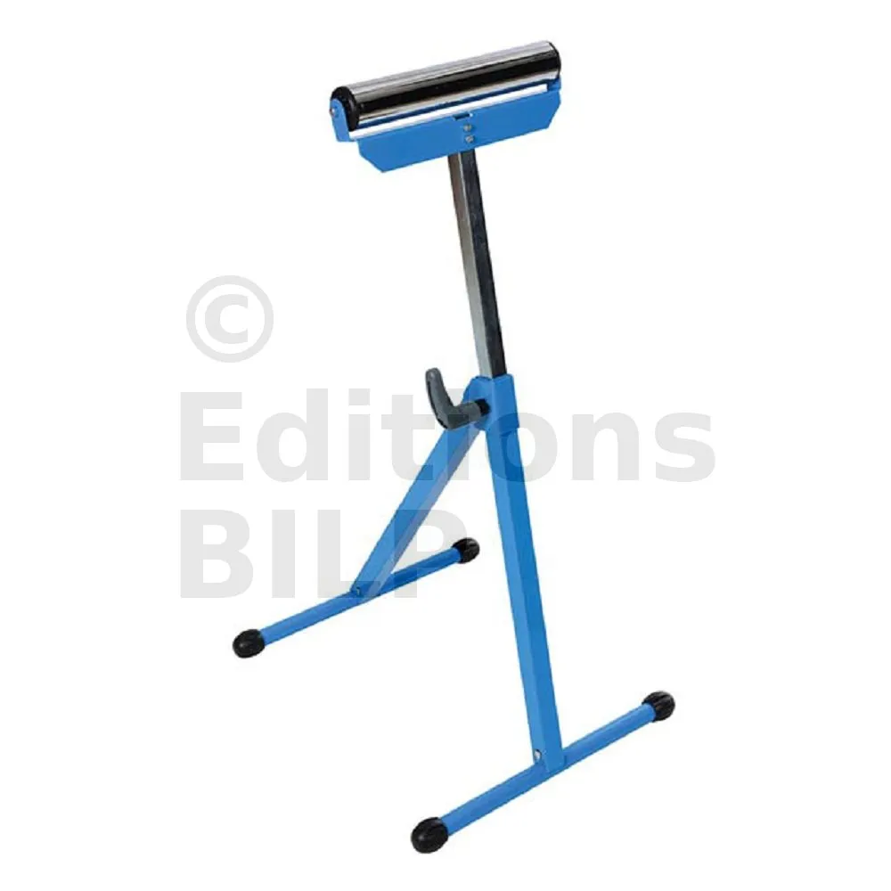 Support avec rouleau pour supporter les pièces de travail de grande taille et d’un poids pouvant aller jusqu’à 60 kg. Rouleau chromé à embase en acier ultra-résistant. Hauteur réglable de 685 à 1 080 mm.