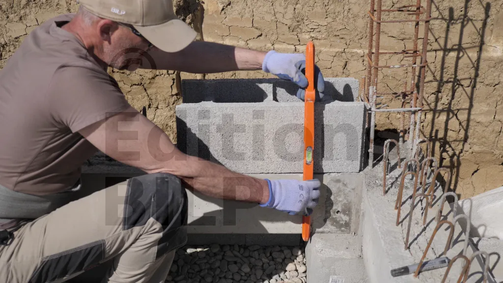 Nous n’utilisons pas de mortier de pose pour régler la verticalité des blocs.