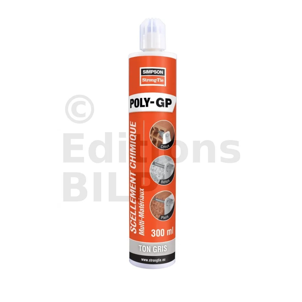 La résine multi-matériaux POLY-GP est un ancrage chimique permettant de fixer les tiges filetées dans le béton C20/C25 à C50/60 et toutes les maçonneries creuses et pleines.