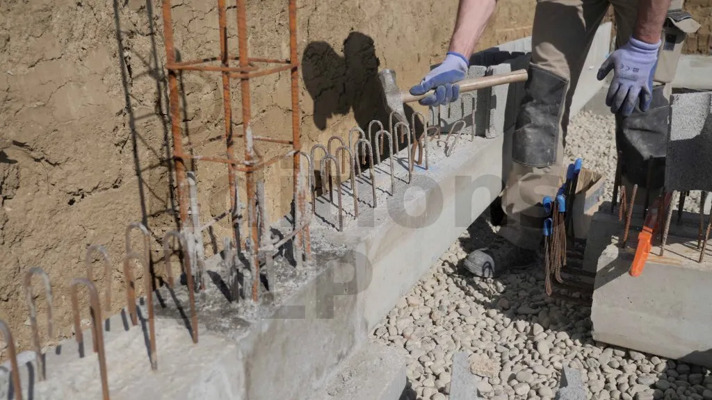 - Les armatures transversales de la longrine qui gênaient ont été pliées car elles ne pouvaient pas être coupées pour assurer la liaison entre le mur et la longrine.