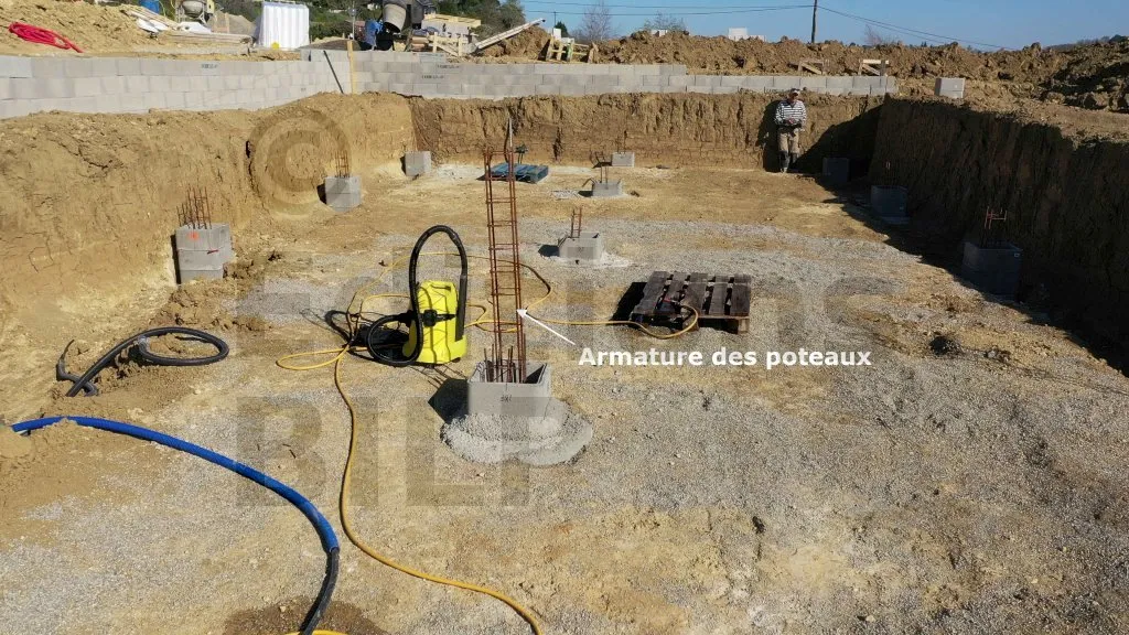 - Sur la partie où il a les boucles de levage, quand celles-ci empêchent la pose du bloc, leurs positions ont été projetées sur le bloc à bancher pour y faire des entailles.