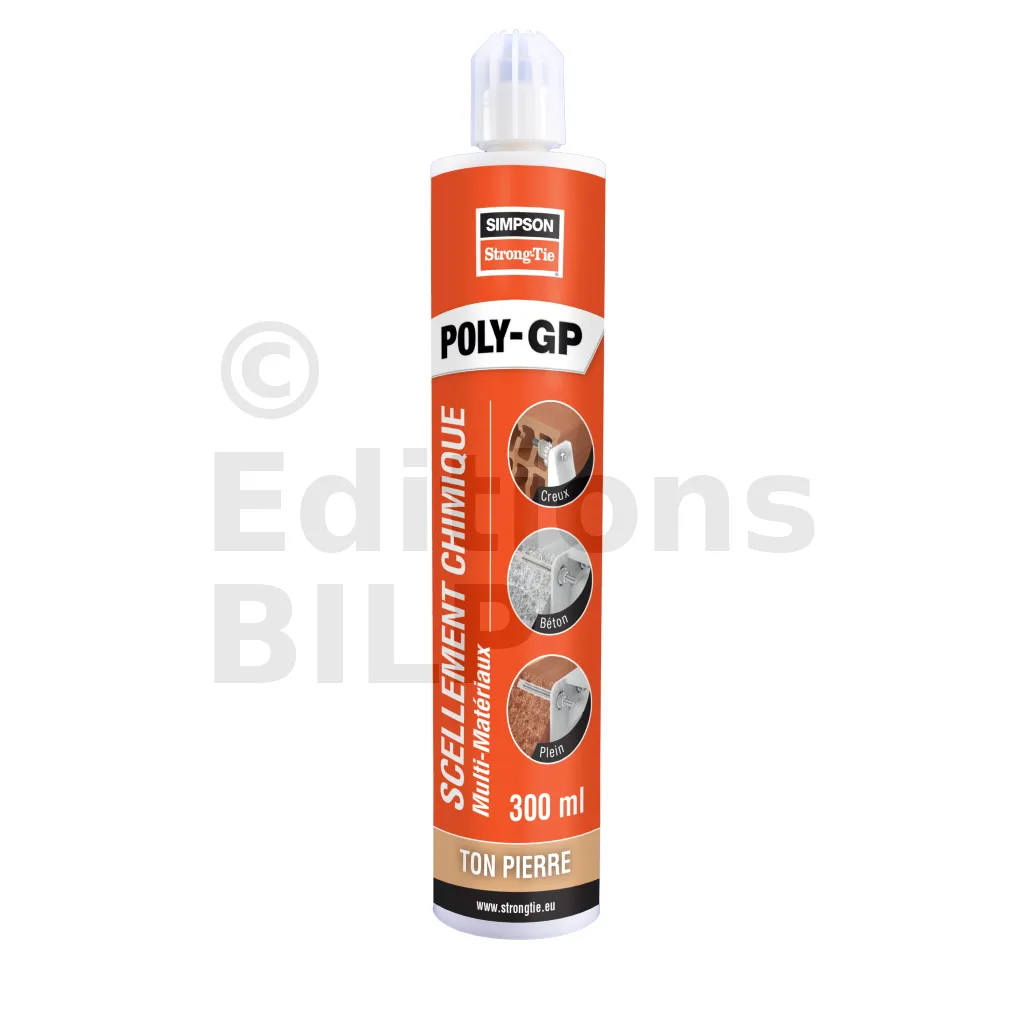 La résine multi-matériaux POLY-GP est un ancrage chimique permettant de fixer les tiges filetées dans le béton C20/C25 à C50/60 et toutes les maçonneries creuses et pleines.