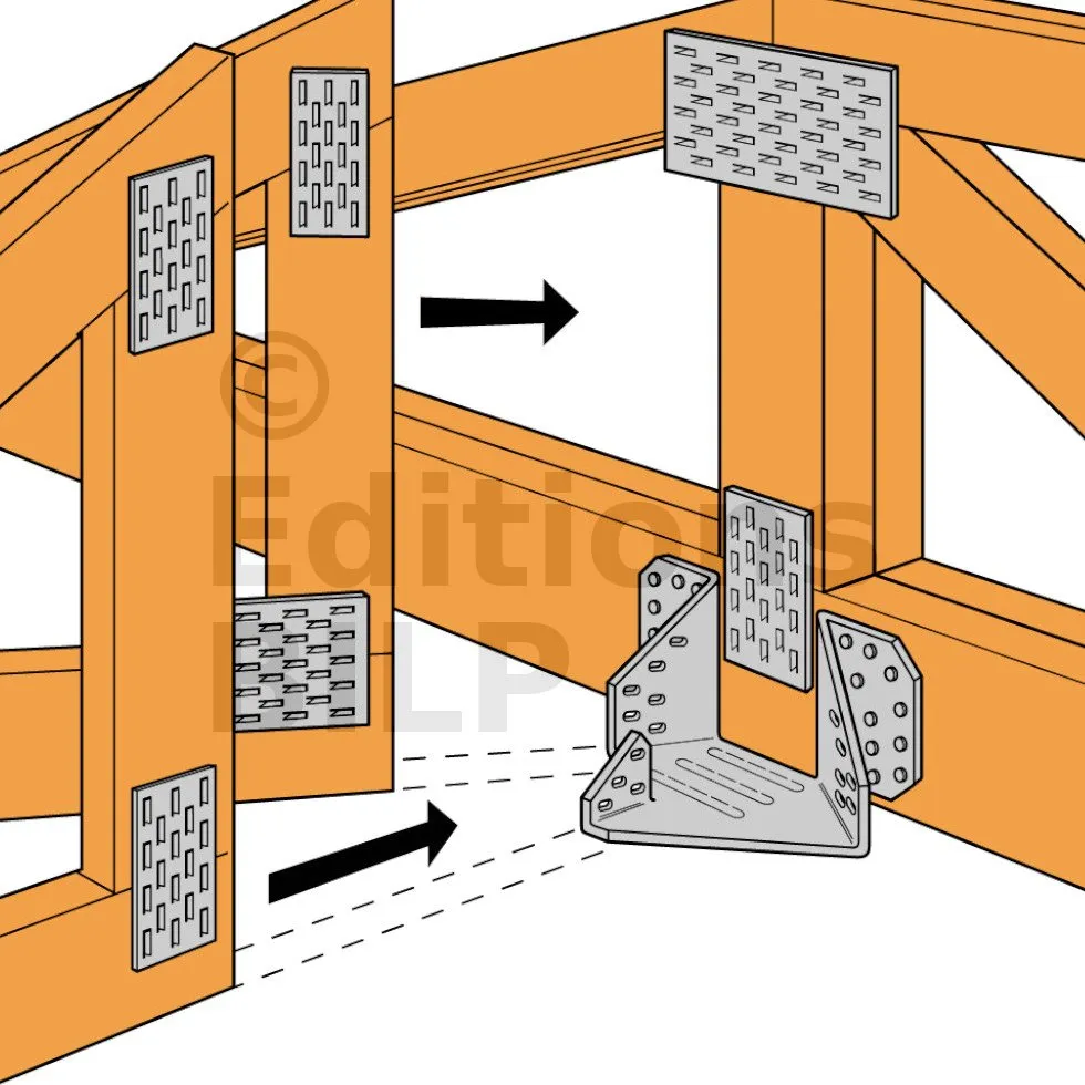 - Les éléments réalisés avec 2 plis doivent être assemblés entre eux afin qu’ils agissent comme un seul et même élément (voir Eurocode 5).