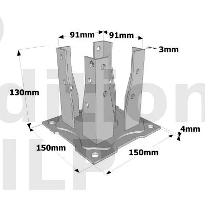 Le pied de poteau carré sur platine AG527P est préconisé dans la réalisation de petits ouvrages tels que les clôtures de jardin. Très facile à démonter, il est particulièrement adapté pour des structures temporaires. Le AG527P est à boulonner.