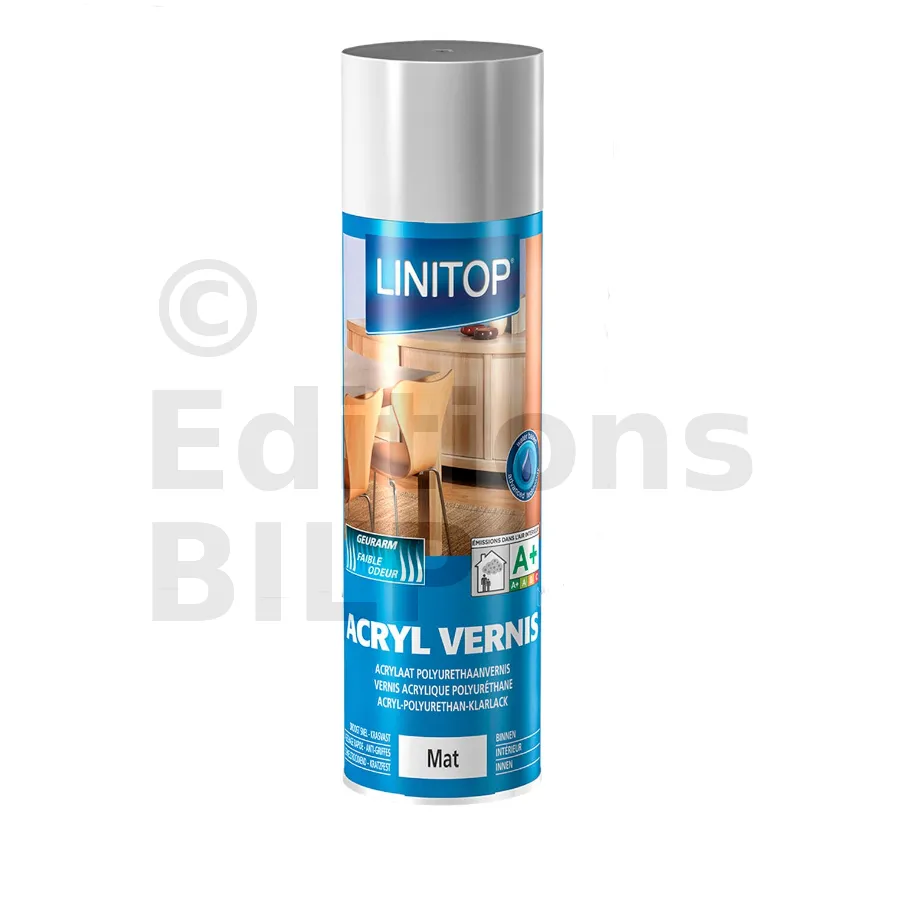 Acryl vernis spray est destiné à usage intérieur, pour la mise en peinture de petits objets ou de petites surfaces sur boiseries, meubles, dessus de table, en les protégeant et en les embellissant. Convient également pour les bois indigènes et tropicaux, anciens vernis propres, adhérents et dépolis.