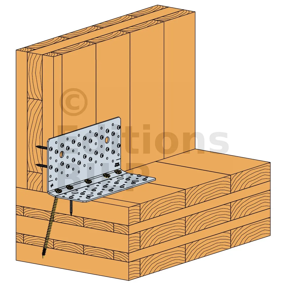 3- Insérer ensuite les vis filetage total dans les perçages proches du pli à un angle d’environ 70° (l’utilisation d’un gabarit est recommandé pour plus de rapidité et de précision).