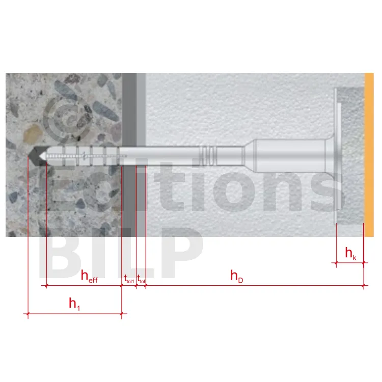 - hef : profondeur d’ancrage (À consulter dans les fiches produits des références concernées.)
