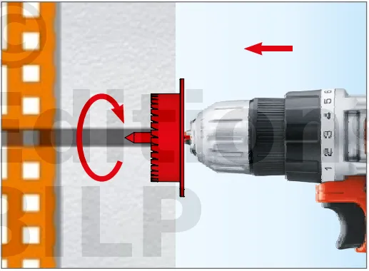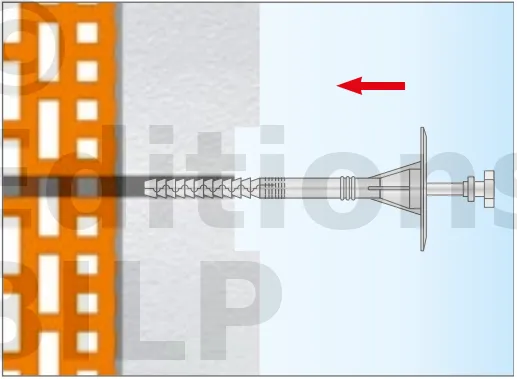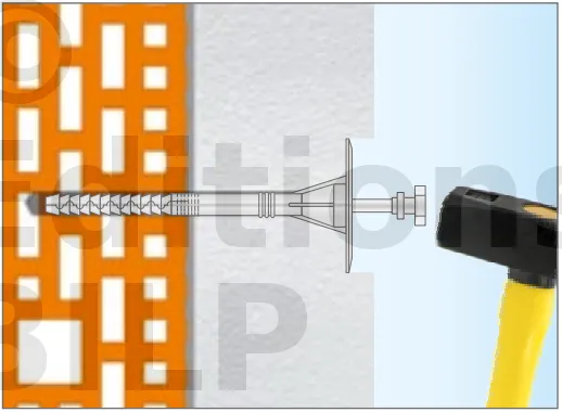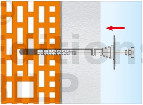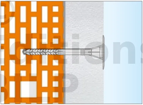 - Enfoncer le corps de la fixation de manière à ce que la rondelle de fixation soit orientée vers le matériau d’isolation thermique.