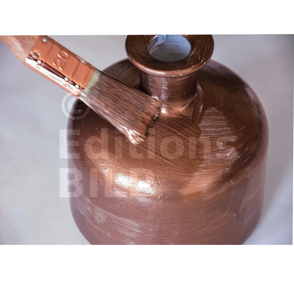 - Il est possible de corriger son décor après séchage complet en réappliquant localement du REACTIV LEAF BRONZE et /ou du BRONZE SPIRIT selon méthode ci-dessus.