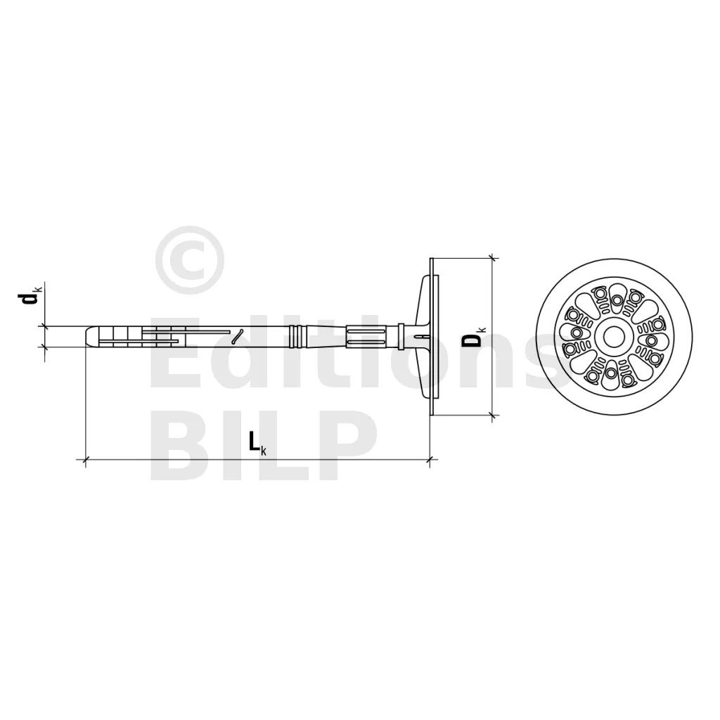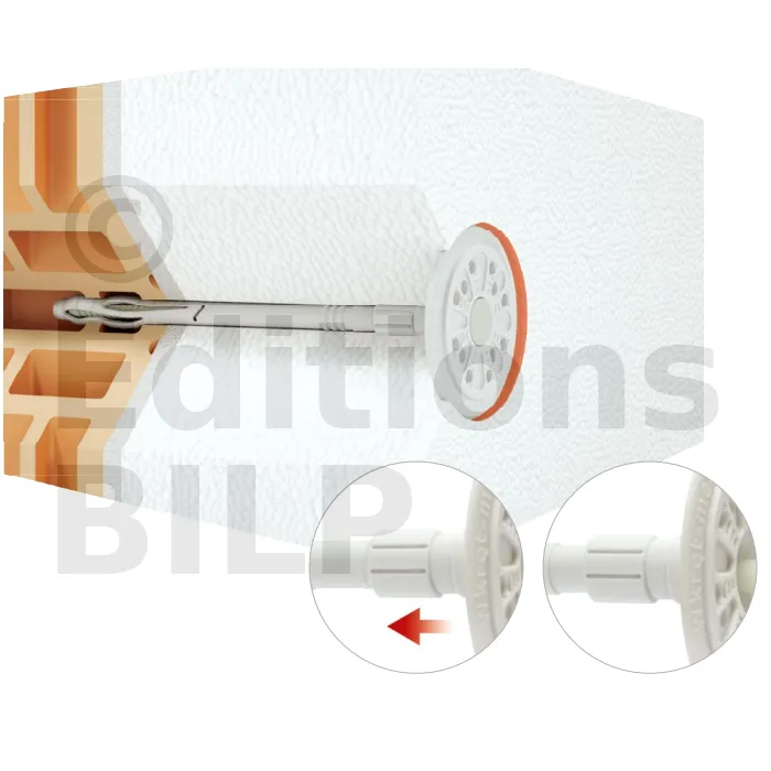 Cheville d’isolation à frapper avec clou en plastique, avec plaque de fixation coulissante