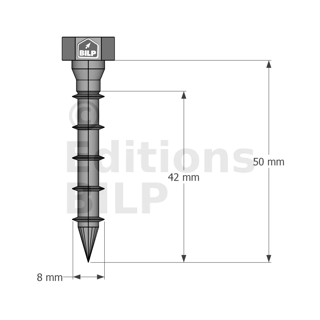 - Marquage de la tête incluant la longueur en mm facilitant le contrôle,
