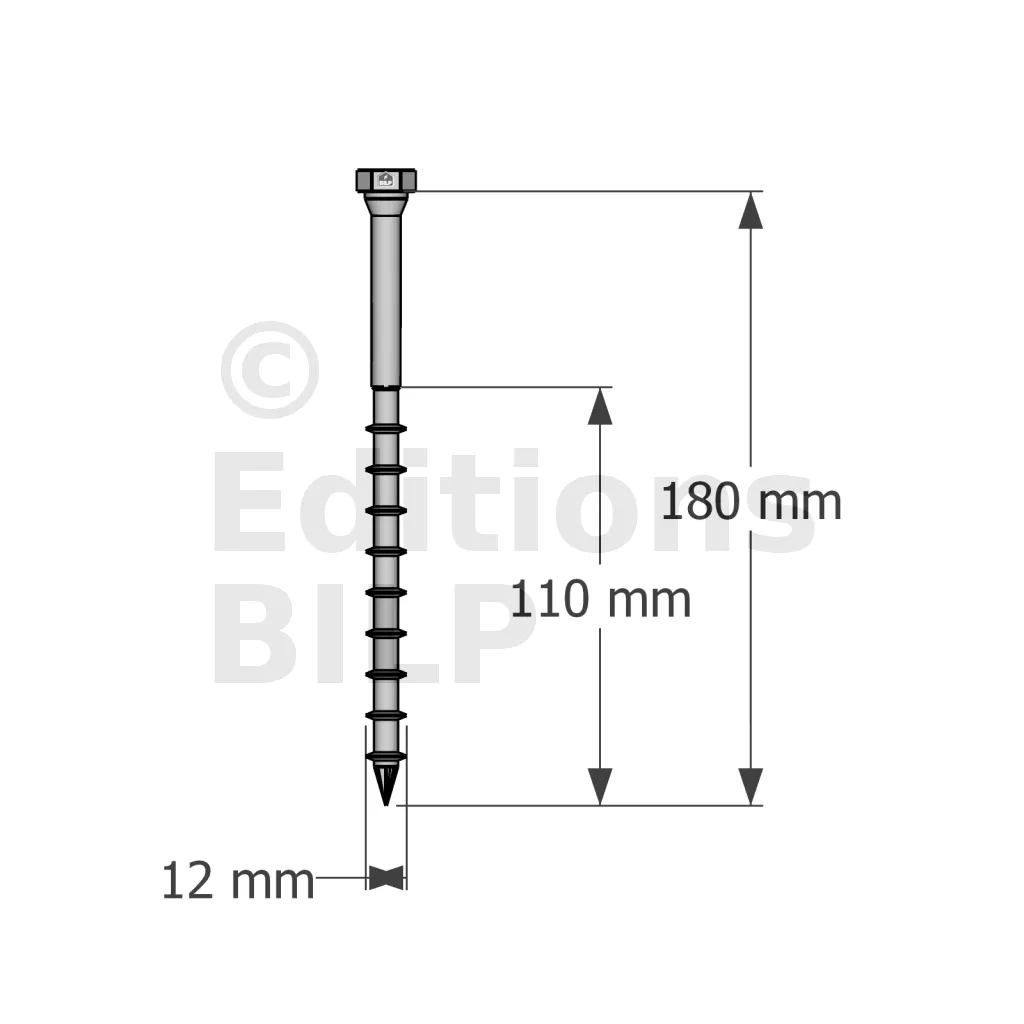 Vis connecteurs acier sur bois, SSH12.0X180 - Réf. 75169