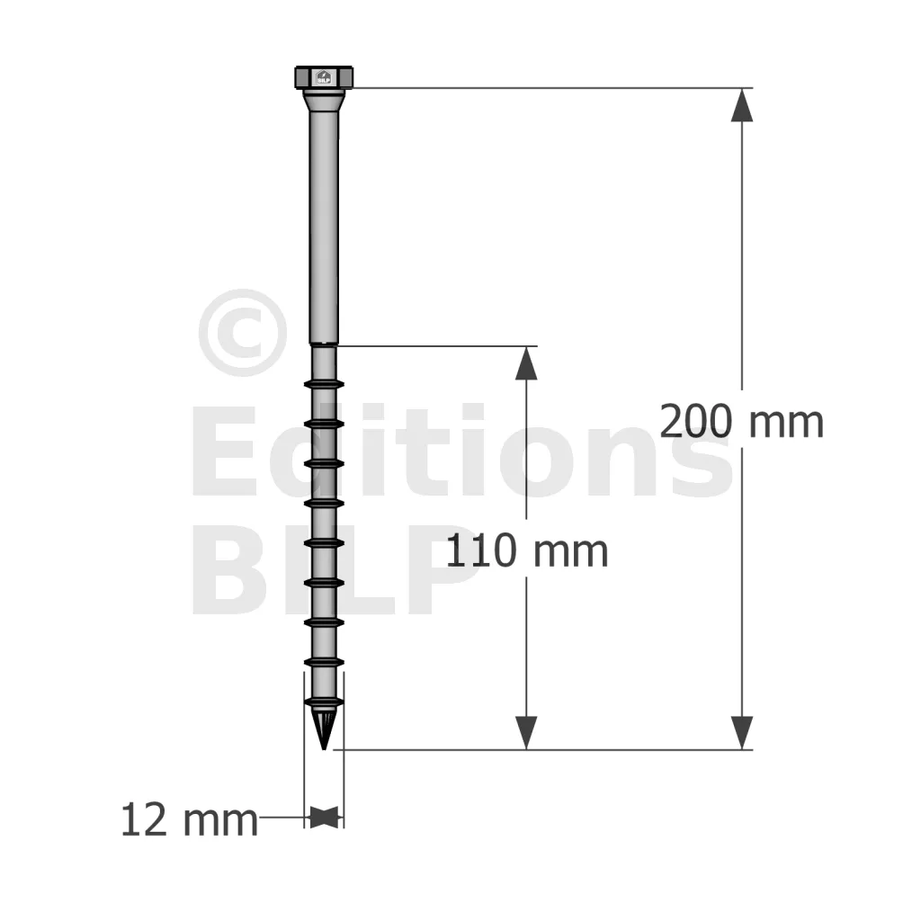 Vis connecteurs acier sur bois, SSH12.0X200 - Réf. 75170