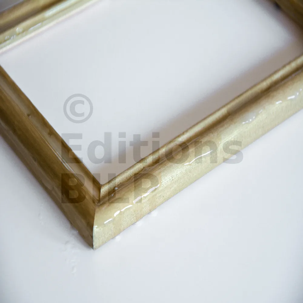 - Il est possible quand l’effet final est sec mais non recouvert d’un vernis de protection, de créer des effets vieillis comme sur la photo. Il suffit de passer de l’eau très chaude sur certaines parties du support et de retirer la finition par zonage.