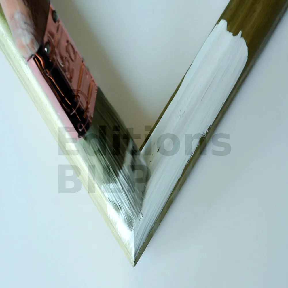 3 - Appliquer une couche de finition (peinture ou patine acrylique en phase aqueuse de la couleur finale voulue) en VEILLANT A SIMPLEMENT DÉPOSER LE PRODUIT ET NE PAS REVENIR sur l’application (NE PAS « CROISER », NI LISSER). Laisser sécher la finition le temps nécessaire indiqué sur la fiche technique de ce produit.