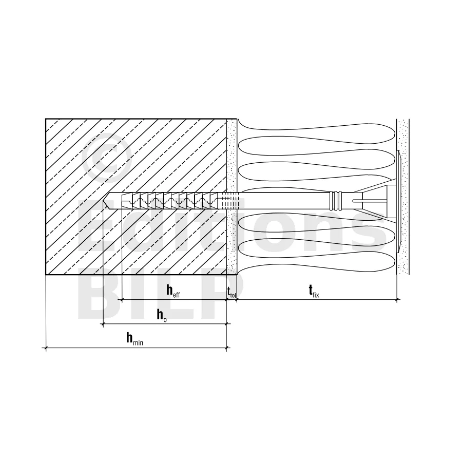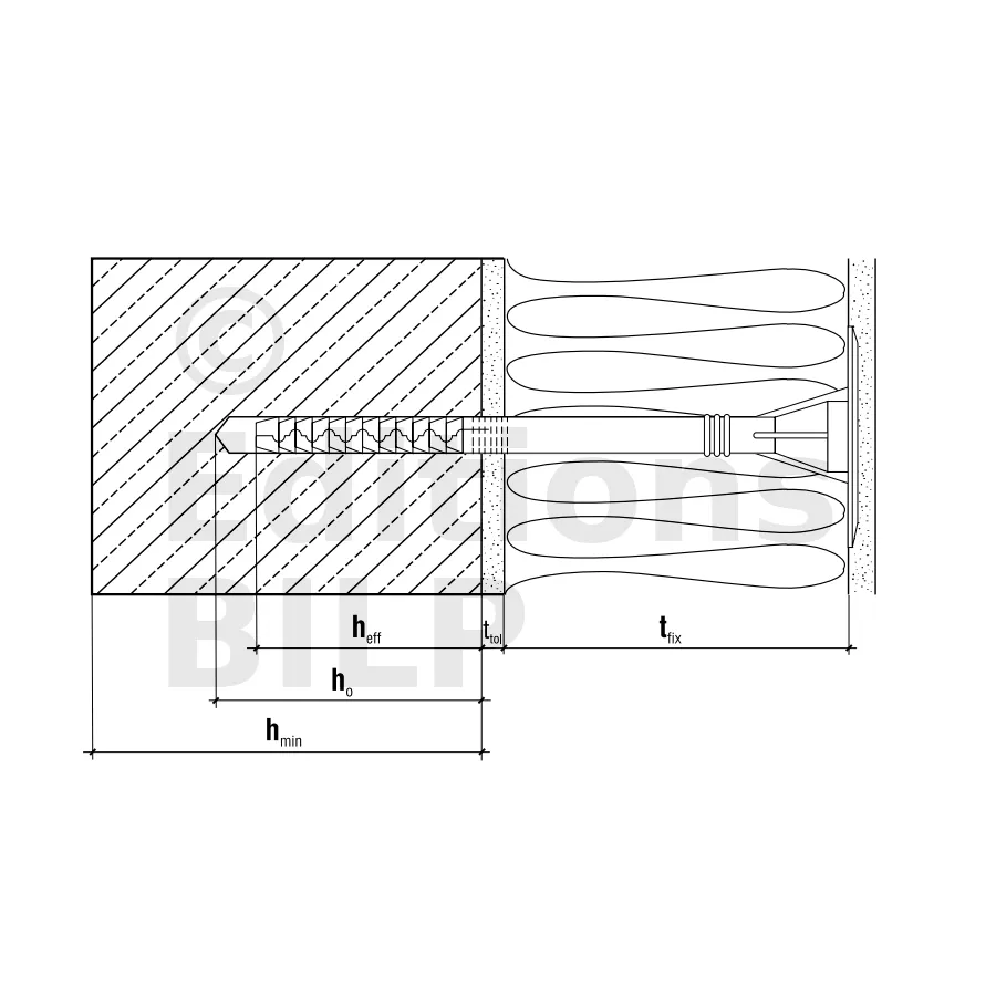 - Profondeur d’ancrage (hef)70mm