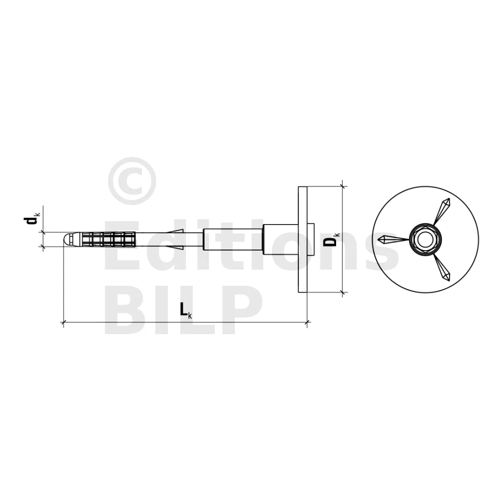 - Cheville avec collerette de coupe.