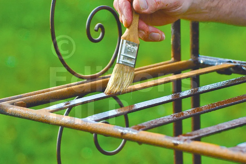 - Décoratif : conserve l’aspect rouillé des supports tout en les protégeant.