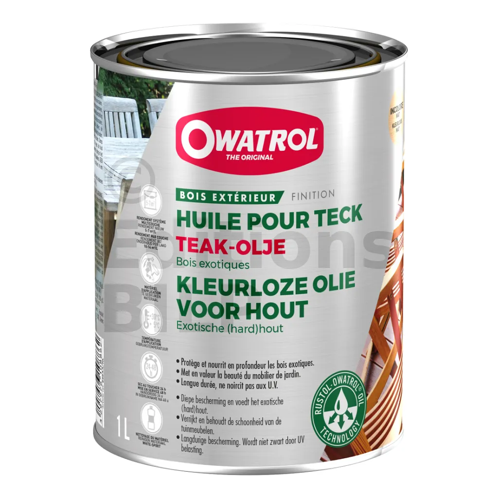- Permettez à vos bois exotiques de résister aux agressions extérieures (humidité, soleil, tache) avec TEAK-OLJE. Cette huile pour Teck destinée à votre mobilier de jardin permet de protéger et de nourrir en profondeur votre bois.