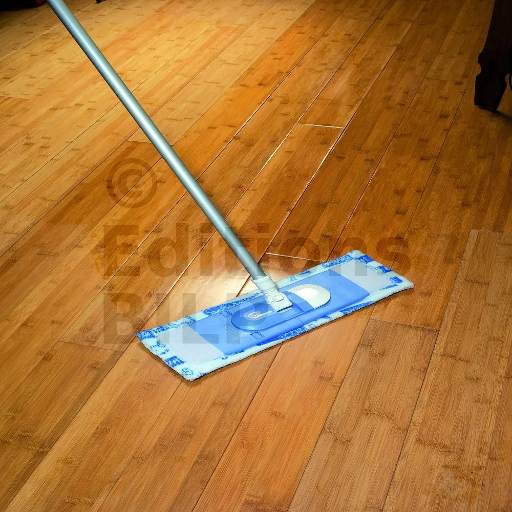 - Après séchage, effectuer un rinçage à l’eau avec un balai serpillière en évitant de faire des flaques.