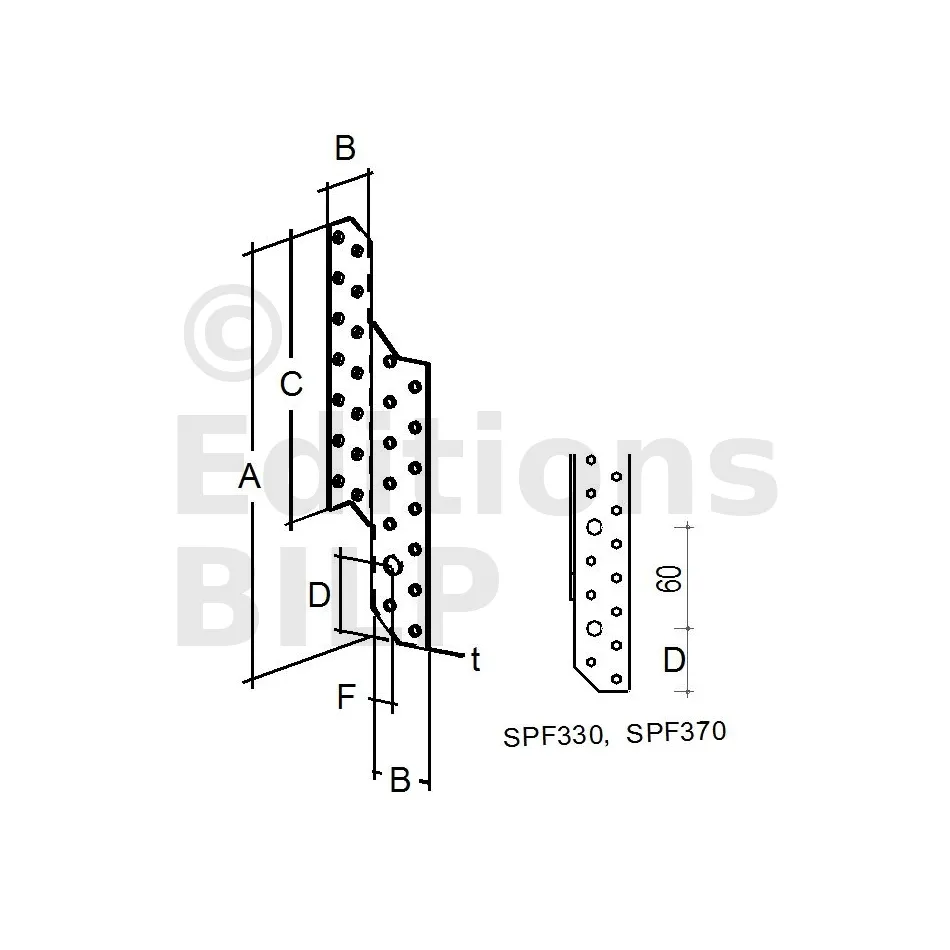 Les valeurs caractéristiques sont données dans ce tableau pour une patte de solivage, dans le cas où les éléments bois sont bloqués en rotation.
