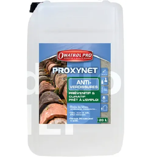 PROXYNET : Anti-verdissures PRET A L’EMPLOI. Préventif / Curatif. Effet remanent - Toits / façades / murs / sols... - Réf. PROMOUS20