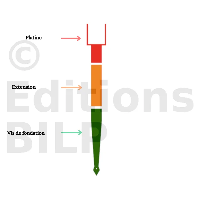 En ajustant la vis jusqu’à joindre le sol "dur", les divers tailles de vis et de rallonges vous permettront de vous adapter à la nature du sol que vous rencontrez.