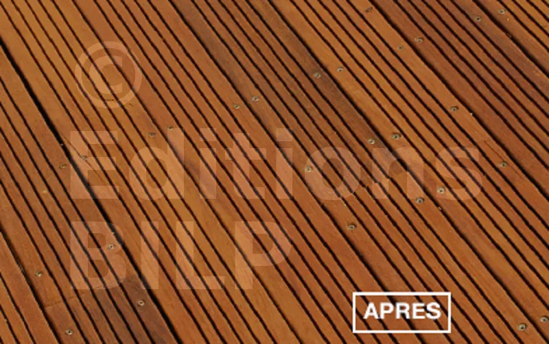 - Bois durs : Teck, Ipé, Bangkiraï, Acacia, Maçaranduba, … pour Iroko/Azobé (nous consulter).