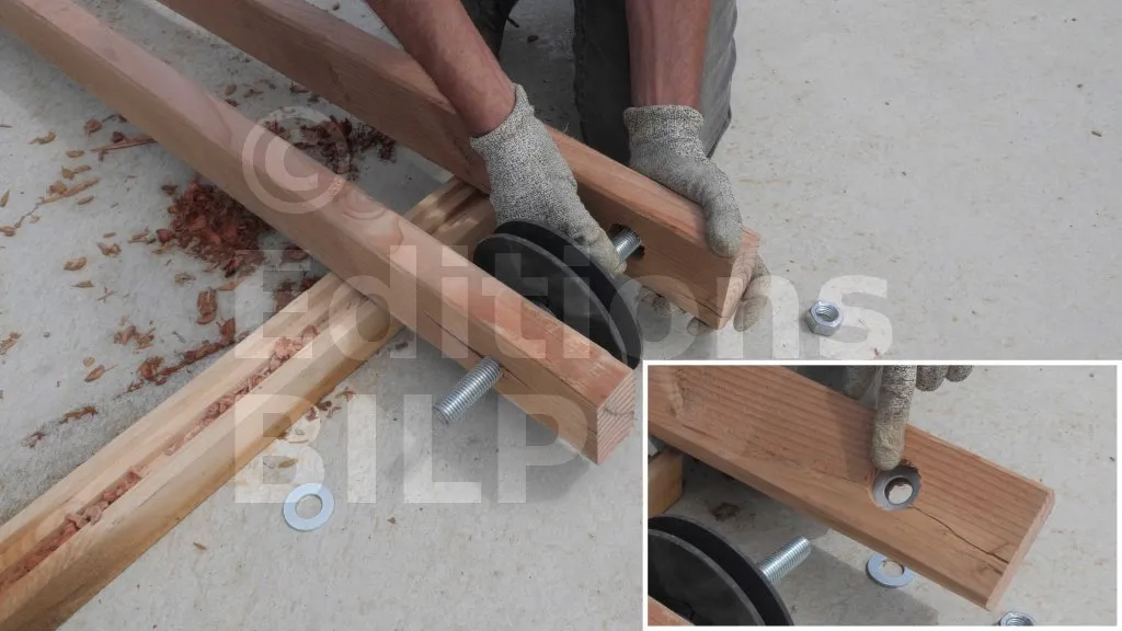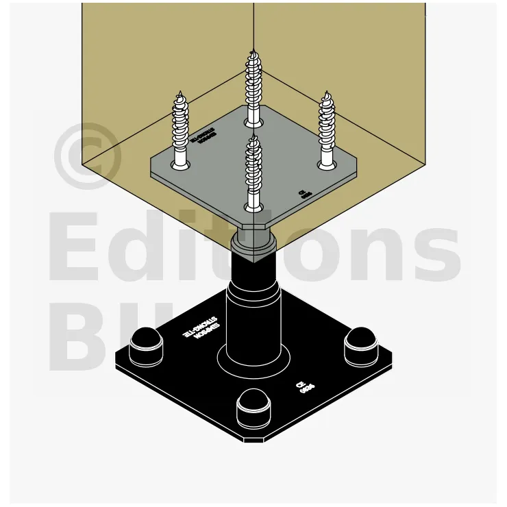 2. Fixer cette platine au poteau à l’aide de tirefonds LAG (pré-perçage nécessaire)