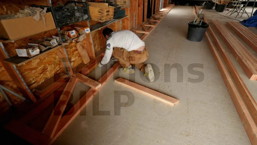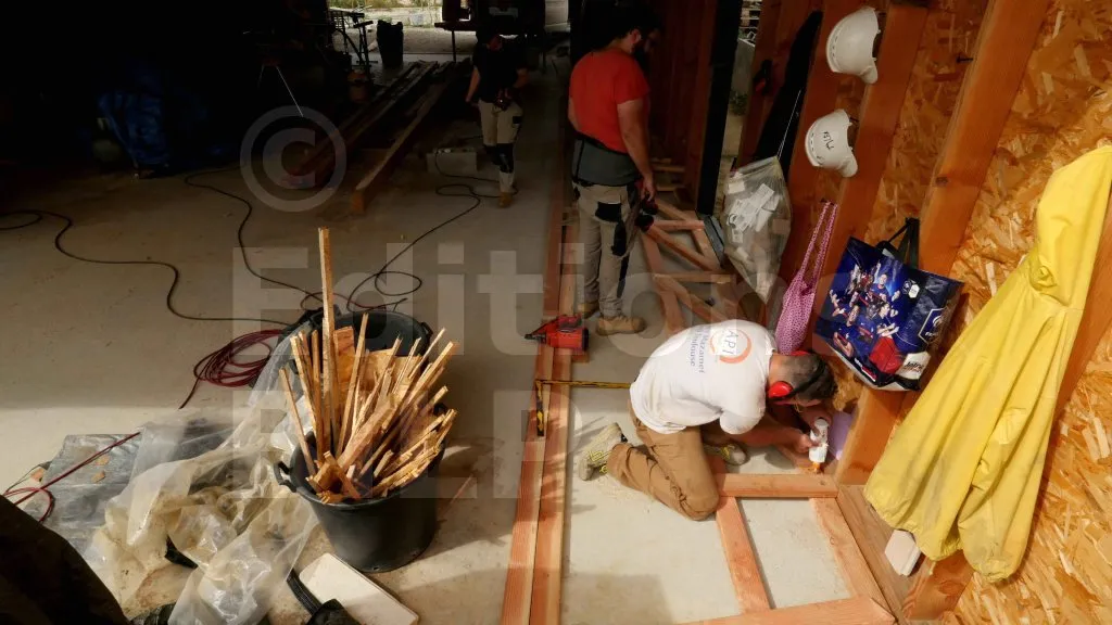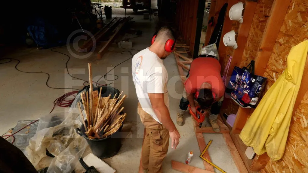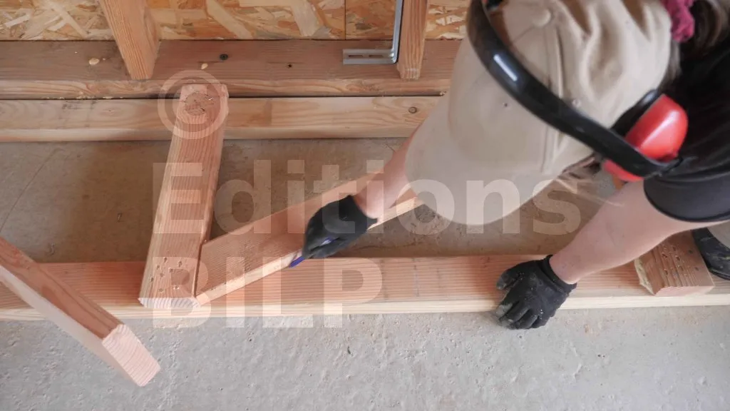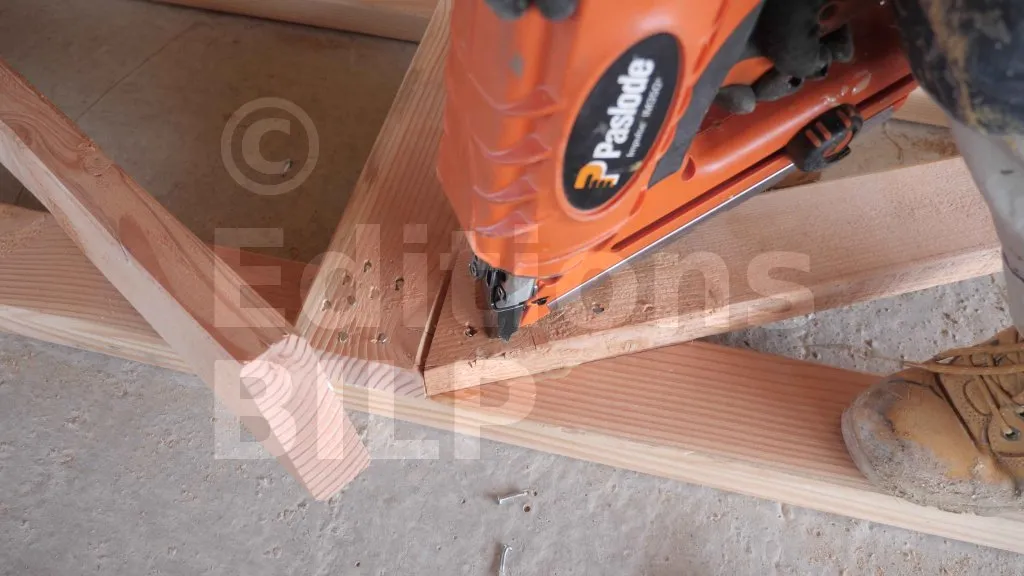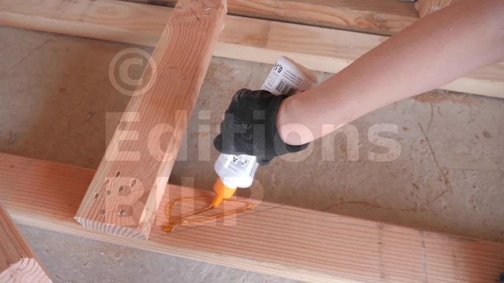 Outre l’encollage, les montants sont fixés à l’aide de clous, à raison de quatre à cinq clous par point de contact.