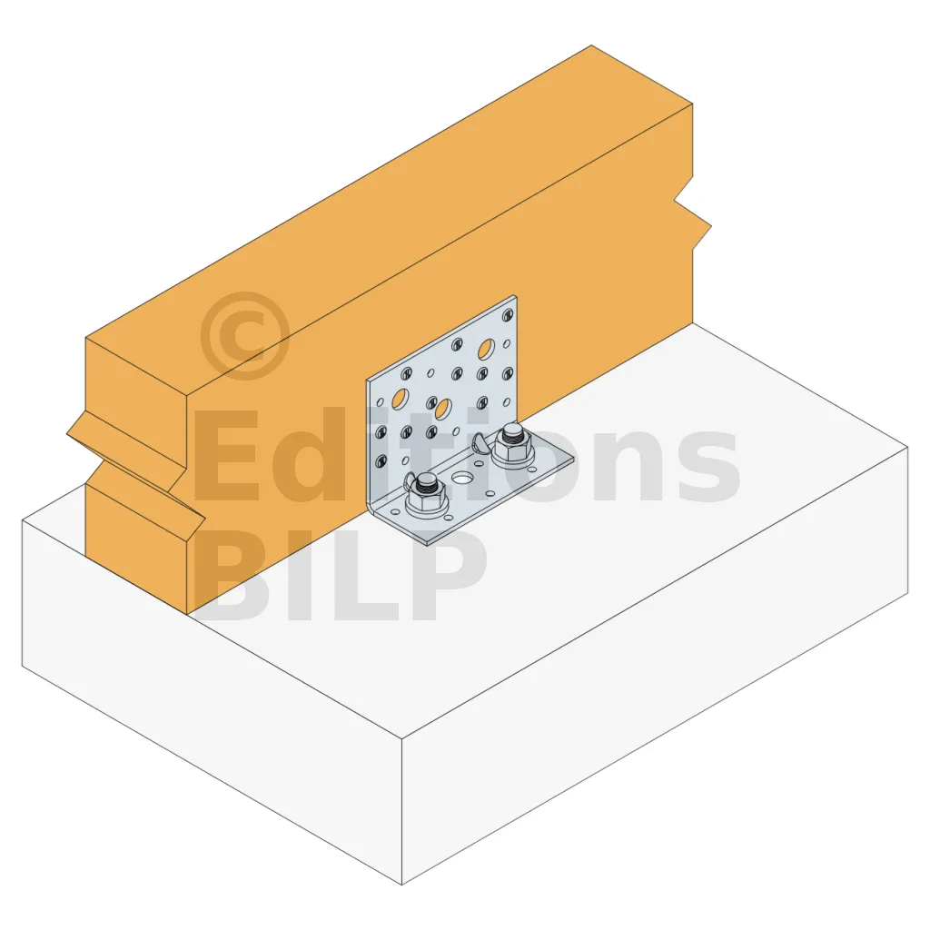 - Fixation bois/support rigide - type poutre/support rigideAile A : 12 - type : CNA Ø4.0x35 ou Ø4.0x50 mm ; Aile B : 2 - type : WA M12-104/5 - Assemblage avec 2 équerres