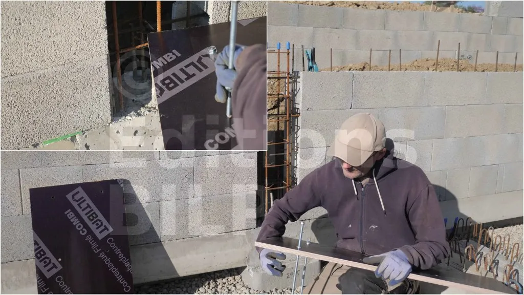 Pour obtenir une finition propre du béton, il est nécessaire de rendre les parois totalement planes, car les panneaux de coffrage doivent être plaqués contre ces parois et il ne doit pas y avoir d’espaces pouvant laisser passer le béton au moment du coulage. Pour cela, vérifiez l’aplomb des blocs à bancher et ajustez-les si nécessaire.