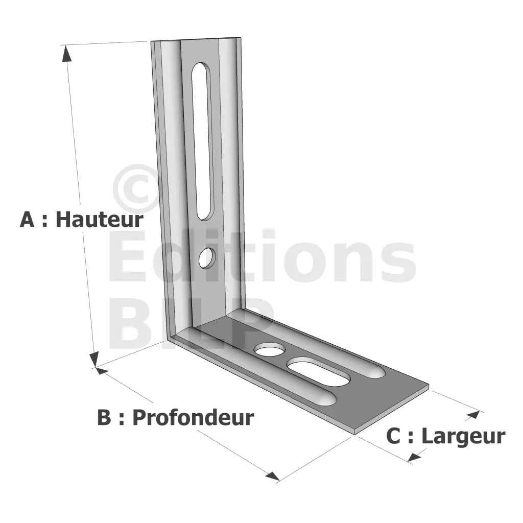 - Trous oblongs facilitant l’ajustement des assemblages,