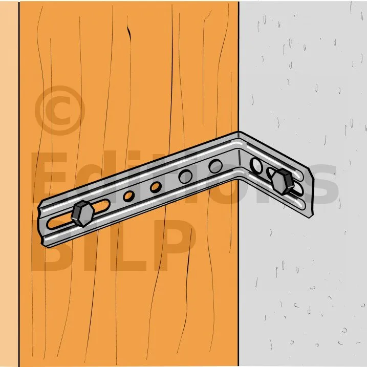3. Si le support est en bois, l’équerre est aussi pointée ou vissée sur celui-ci,