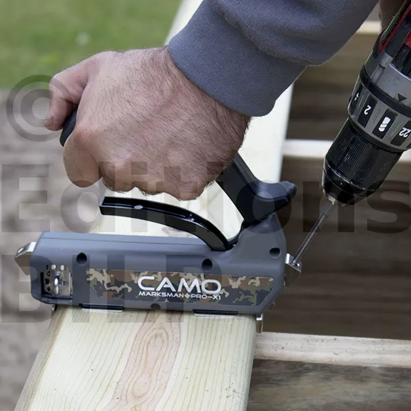 - CAMO dispose d’une gamme complète d’outillage pour la fixation invisible des lames de terrasse.