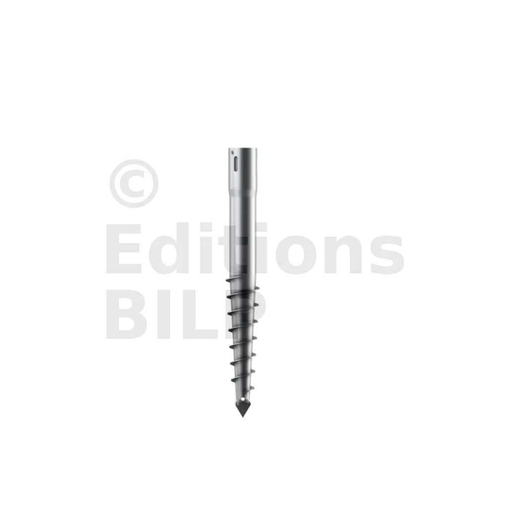 - à l’une des extrémités une pointe “harpon” surmontée d’une partie en spirale pour pouvoir creuser le sol,