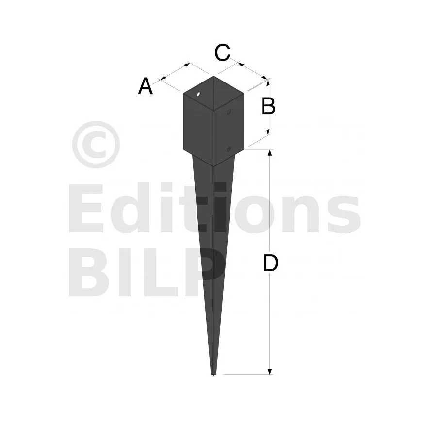 Pied de poteau carré à enfoncer - Finition NOIRE