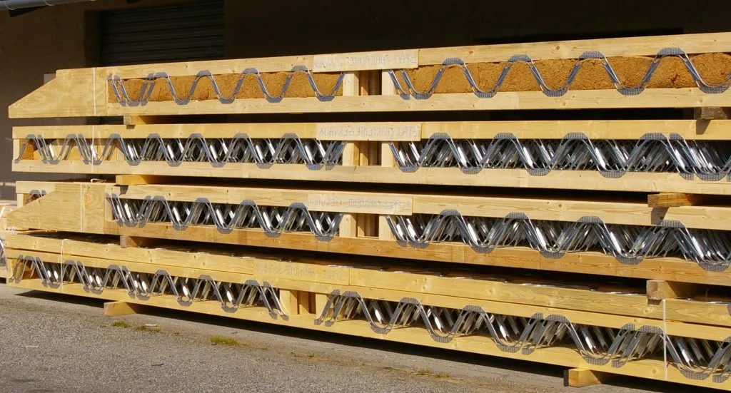 Ce sont des poutres en épicéa composées de deux membrures et qui sont reliées par des connecteurs métalliques en V. Les éléments métalliques sont fixés de chaque côté, de sorte à former une armature triangulée s’assurant de la rigidité des poutr’espaces sur de longue portée,, sans qu’ils aient besoin de poteau de soutien au niveau inférieur. Ainsi, leur portée peut aller jusqu’à 11 m avec une hauteur variant de 25 à 47 cm en fonction des charges qu’ils doivent supporter. La conception de la poutre ajourée a pour objectif de faciliter le passage des fluides et permettre plus de liberté dans la mise en œuvre.