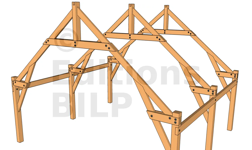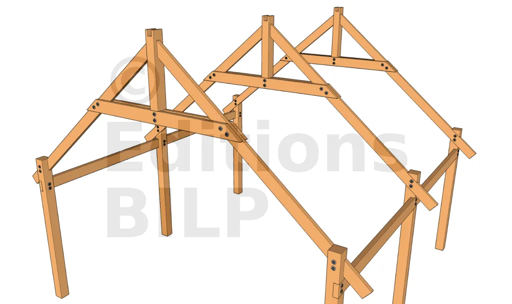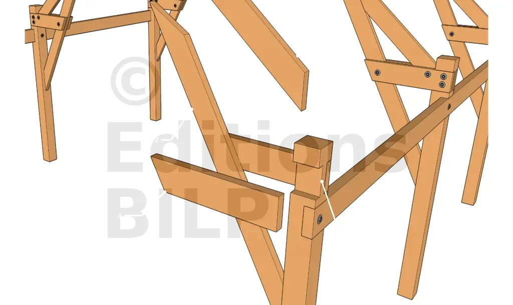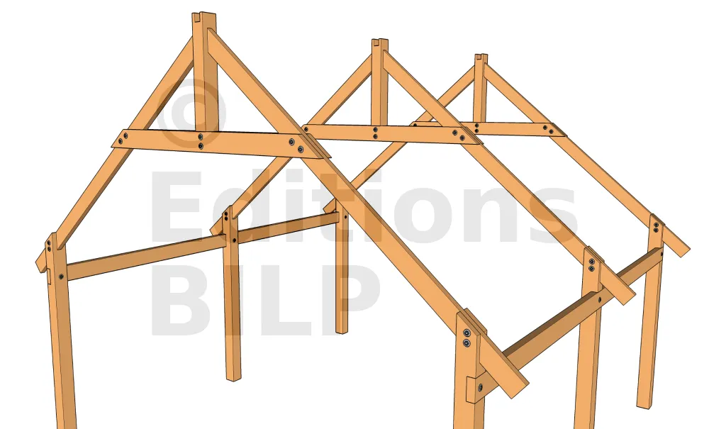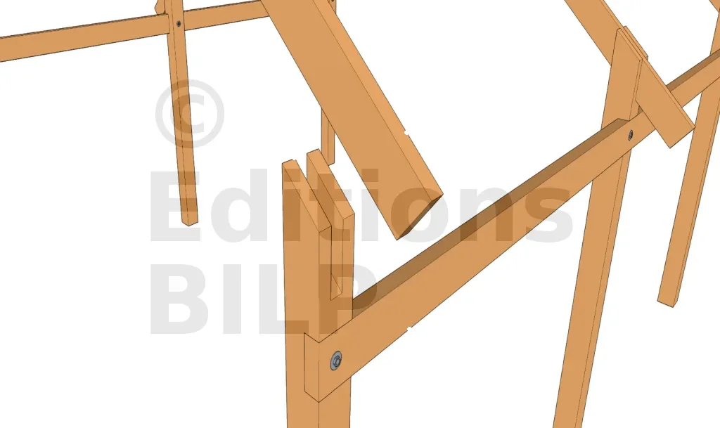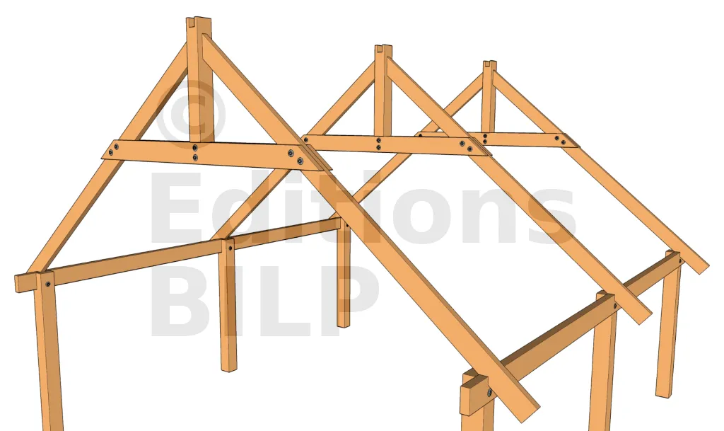 Les arbalétriers sont fixés sur les pannes avec des équerres, pattes de solivage, simple tirefonnage pour charge importante ; ou encore par simple vissage pour charge moins importante. Voir ces méthodes sur les techniques de fixations des chevrons.