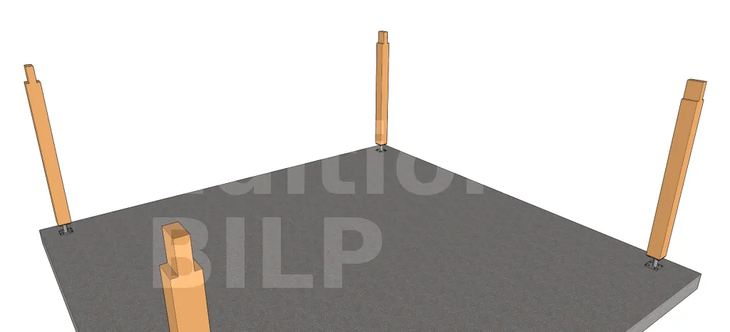 Technique adaptée pour une ferme avec un entrait simple de faible envergure. La technique consiste à fixer l’entrait au-dessus des poteaux avec des équerres par le dessous. Cette méthode n’est pas très esthétique car elle laisse paraître les accessoires de fixation. Elle ne convient pas non plus aux ouvrages de grande taille.