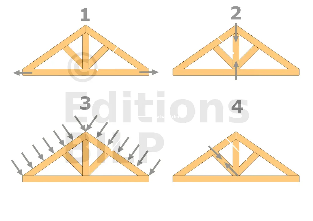 La première étape consiste à déterminer la nature des sollicitations s’appliquant à chaque élément structurel de la ferme. Nous avons généralement sur :