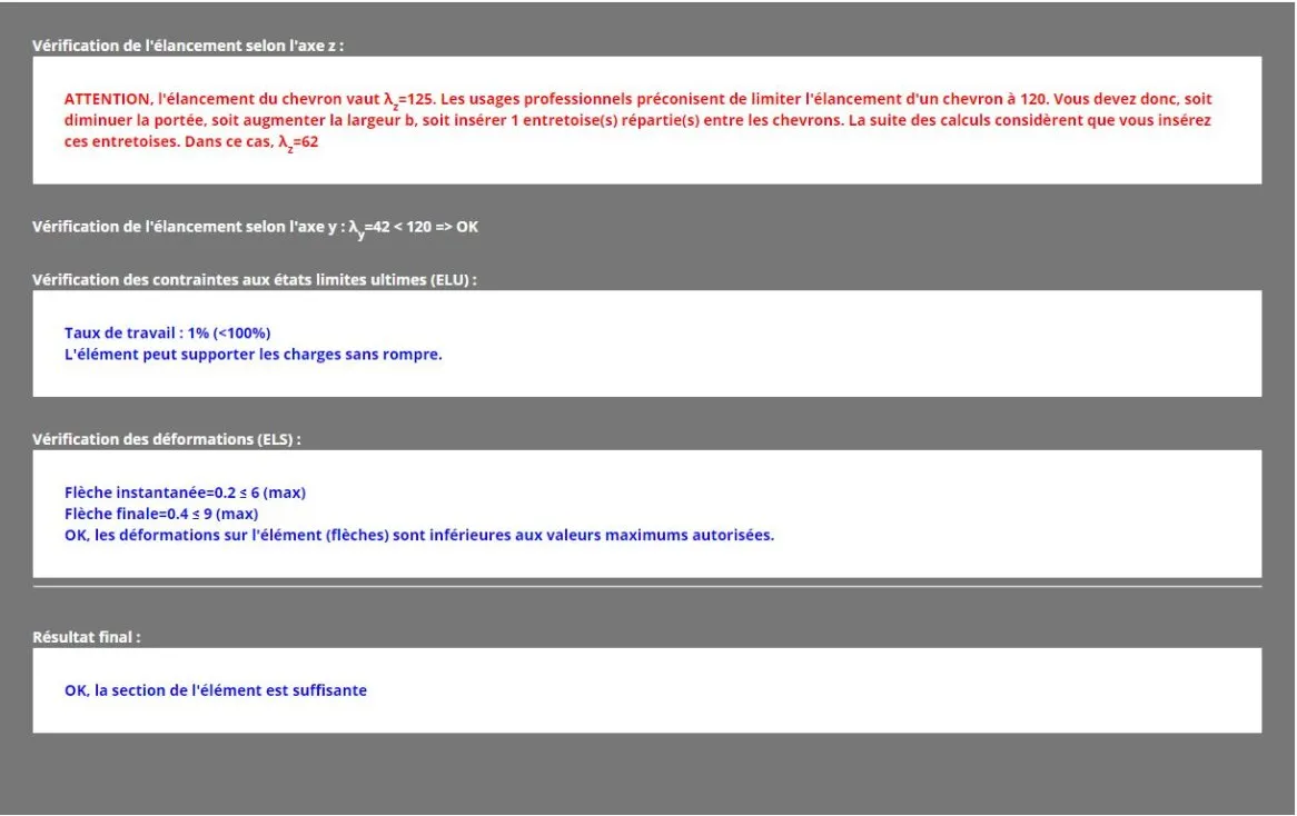 Interprétation des résultats : le taux de travail de l’arbalétrier est de 1% soit 0,01 qui est très largement inférieur à 1. Donc la pièce est surdimensionnée. Par conséquent, la section peut encore être diTEXTE APRES GLOBAL