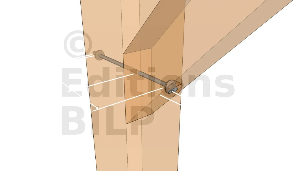 Selon les techniques de fixation, les accessoires à utiliser sont différents. Ainsi, nous pouvons avoir recours au clouage, au vissage, au tire-fonds, au boulonnage (comme sur l’image) ou encore au tenon-mortaise.