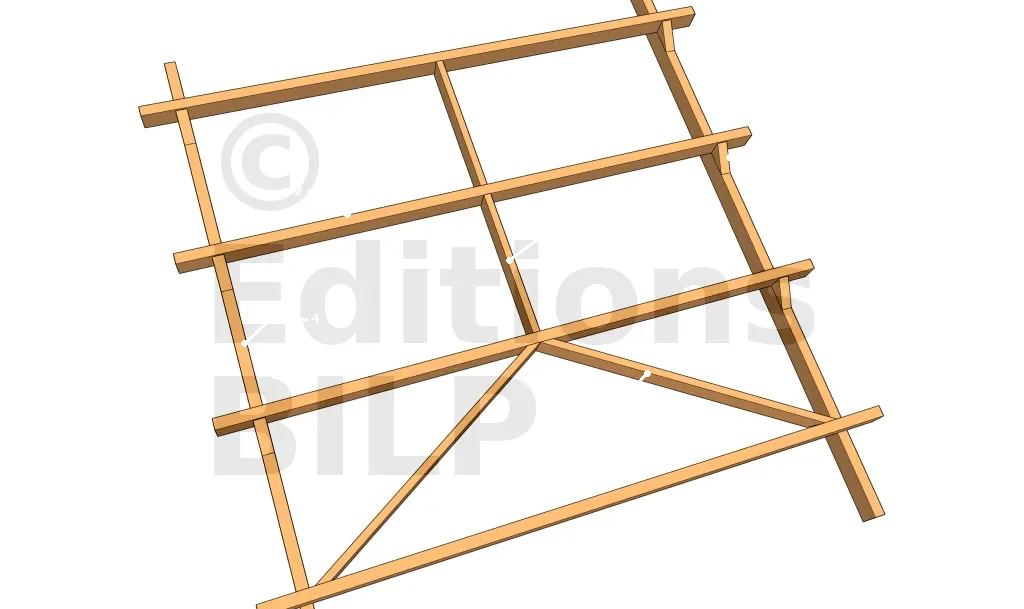 Le système anti-déversement des pannes, ou système de reprise des poussées des pannes, n’est nécessaire que dans le cas où vous optez pour une pose de pannes à dévers. Le principe de ce système est d’interposer des entretoises entre les pannes. Au niveau de la partie basse, deux décharges vont être posées afin de reprendre les poussées générées par toutes les pannes.