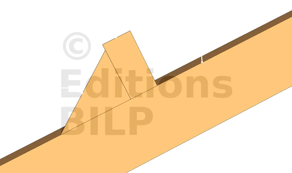 Une panne d’aplomb est une panne qui est positionnée de façon verticale. Si votre ouvrage se situe dans une région où les charges dues au vent sont importantes, il est recommandé d’opter pour des pannes d’aplomb. Dans la majorité des cas, la panne, au niveau de son arête extérieure, va être délardée pour que les chevrons aient une surface d’appui suffisante. Le délardement consiste à couper en chanfrein une partie de l’arrête afin de permettre aux chevrons d’avoir un surface d’appui.