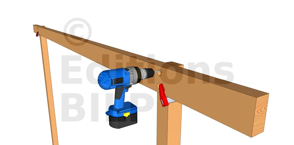 Avec au moins deux serre-joints, serrez les deux pannes contre le poteau. Assurez-vous que les porte-à-faux sur les côtés sont à la bonne longueur.