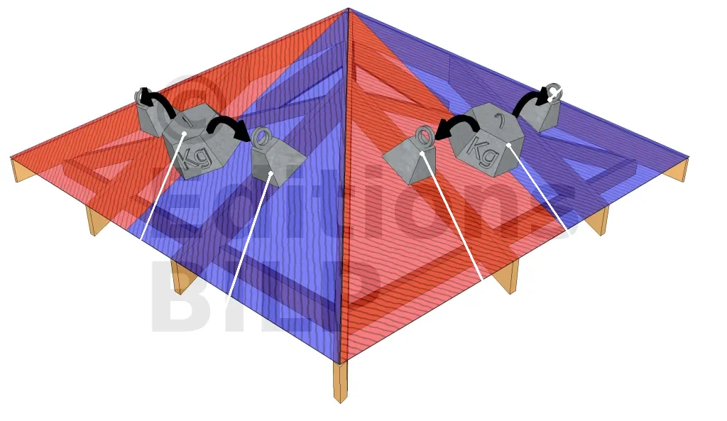 Normalement, chaque arêtier supporte deux demi-charges provenant des deux pans de la toiture. De ce fait, la charge soutenue est comparable à la charge d’un pan de toiture mais étant donné que les empannons reposent sur les arêtiers, la répartition des charges se verra être modifiée.