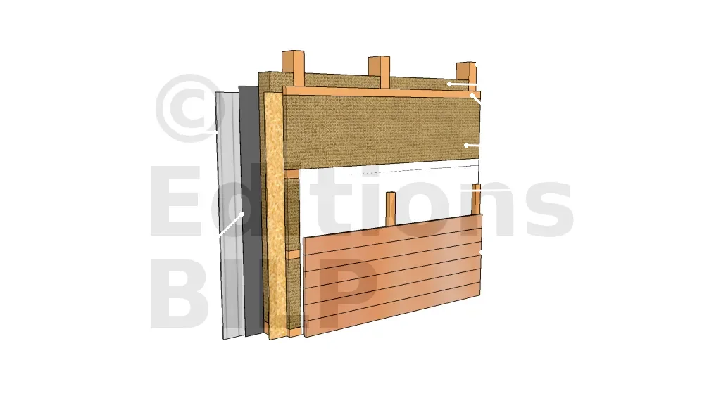 - 1 : Revêtement extérieur avec lame d’air ventilée