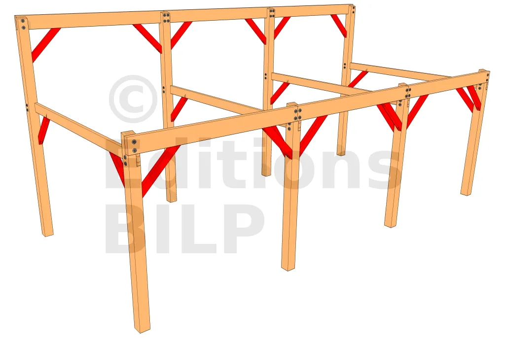 Les bras de contreventement sont utilisés pour des structures à poteaux tels une cabane, une extension, un garage avec ossature poteau-poutre, une pergola, une gloriette, un abri de jardin, un carport, une terrasse. Ils sont fixés directement sur deux éléments importants de la structure : poTEXTE APRES GLOBAL