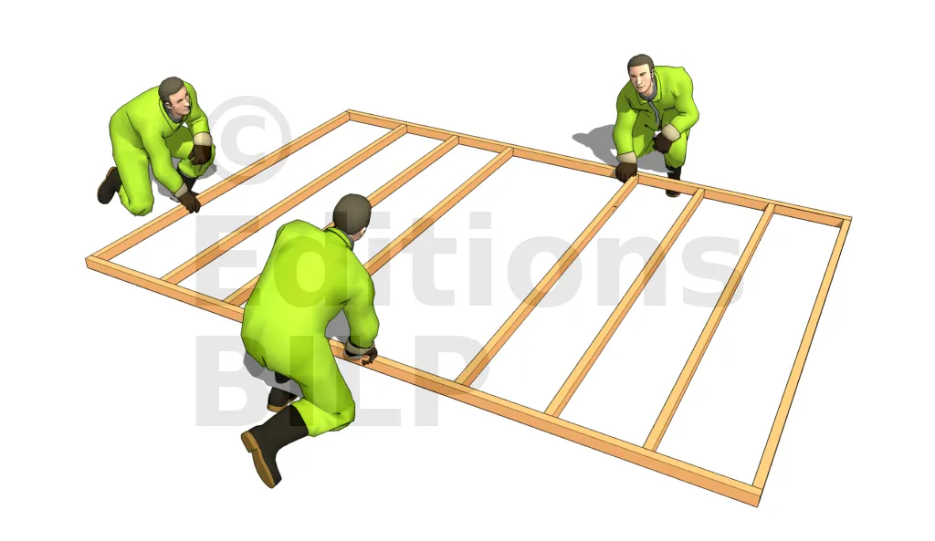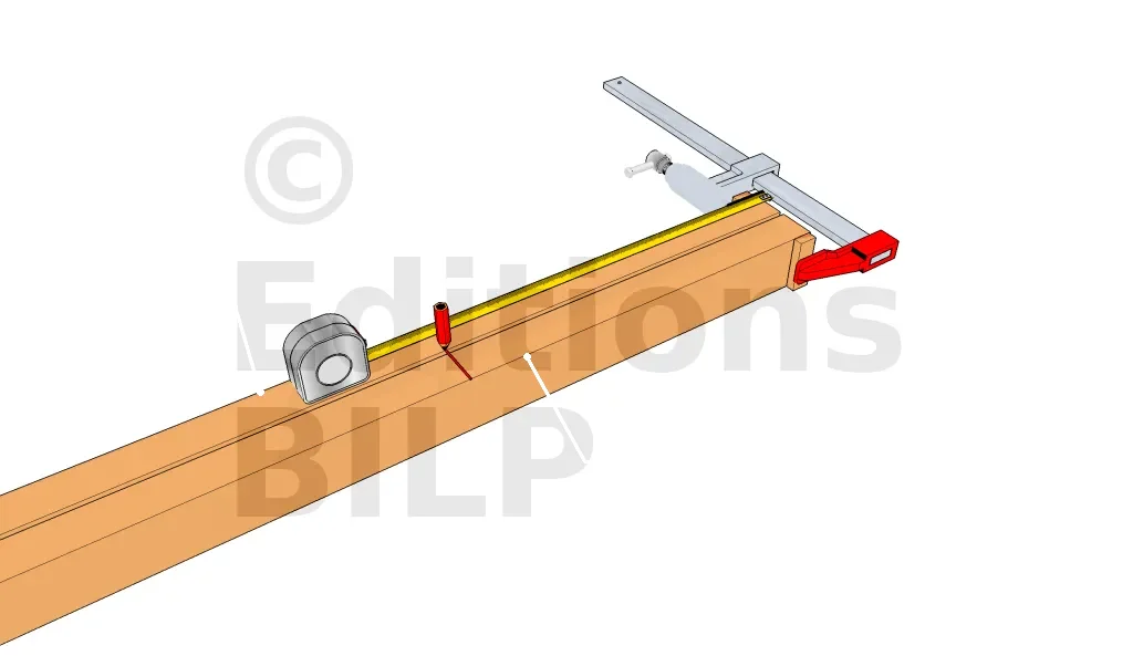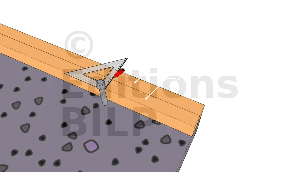 Pour assurer un marquage précis, placer la lisse basse et la lisse de la sablière côte à côte, en alignant parfaitement le bout. Si nécessaire, il est préférable de couper l’autre bout des planches afin que les longueurs soient identiques.